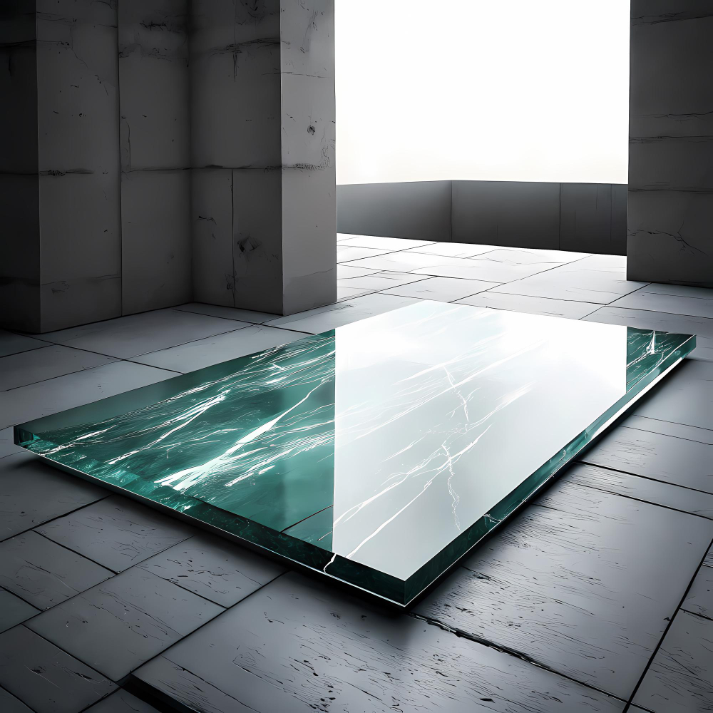 Dalle de sol en verre feuilleté : constituée de plusieurs couches de verre collées entre elles, idéale pour une sécurité renforcée.