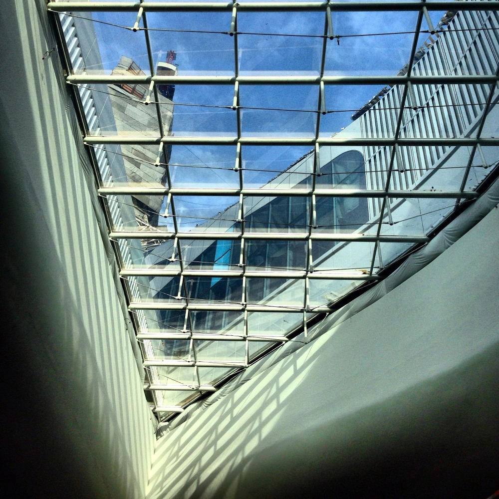 Terrasse suspendue ou toiture en verre,